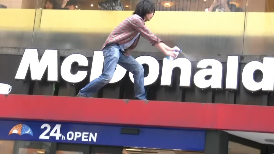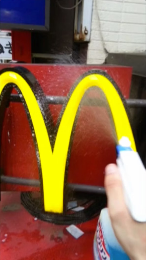 マクドナルドへの常日頃の感謝や愛情、そして怨恨や憎悪を込めて、私が一番よく行く店舗に勝手によじ登り、勝手に看板のお掃除をした。
