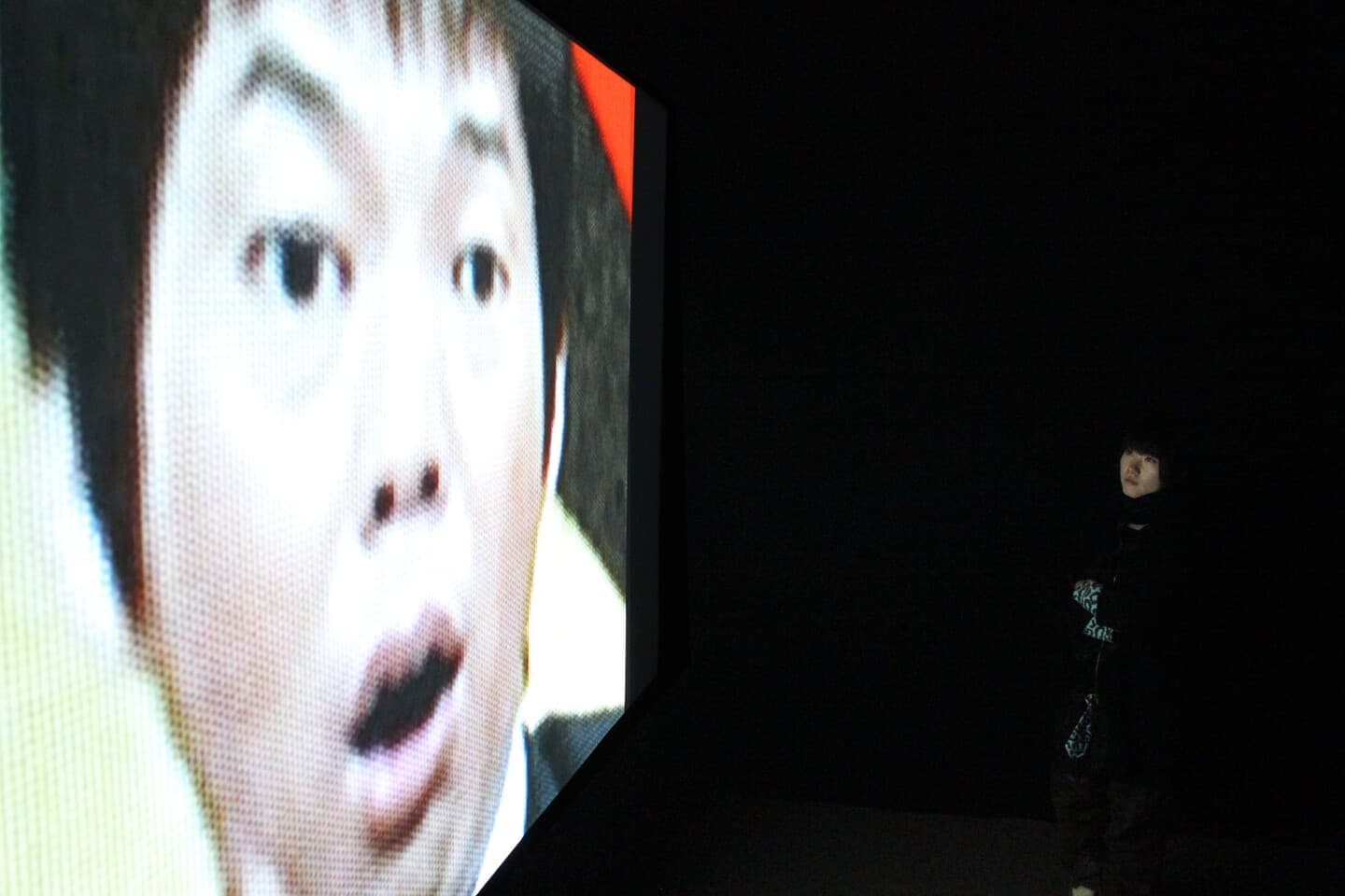 膨大な視線に晒される巨大なメディアに漂流する彼らの「肖像」を、拡大してスローモーションで流した。