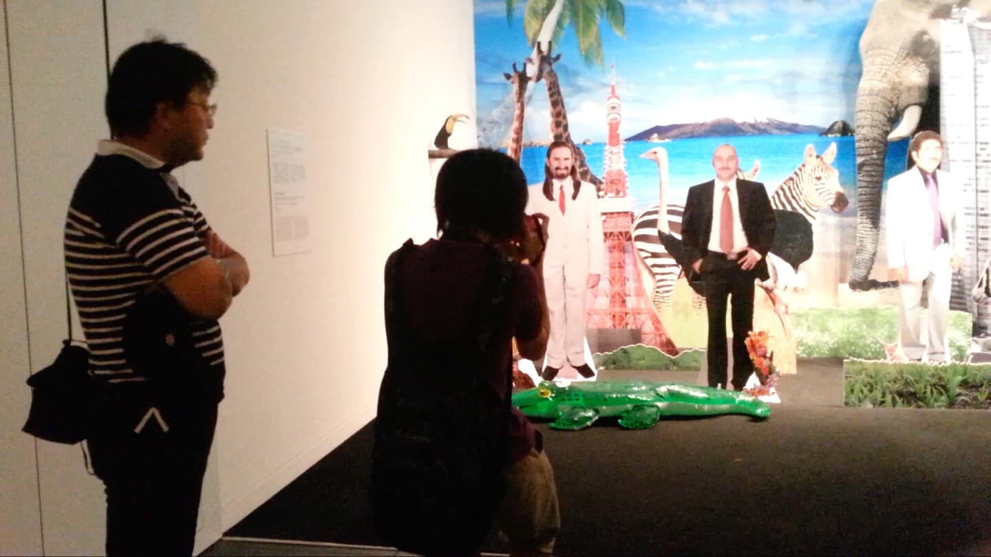 私は展覧会の警備の隙間を縫って、他のアーティストの作品と一体化させ、価値を高めてみることにした。