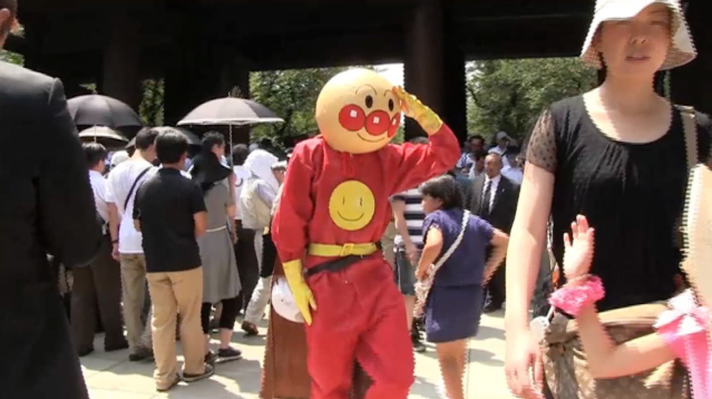 On the anniversary of the end of World War II, I went to Yasukuni Shrine dressed as Anpanman, and marched through the shrine grounds while playing Anpanman’s March.