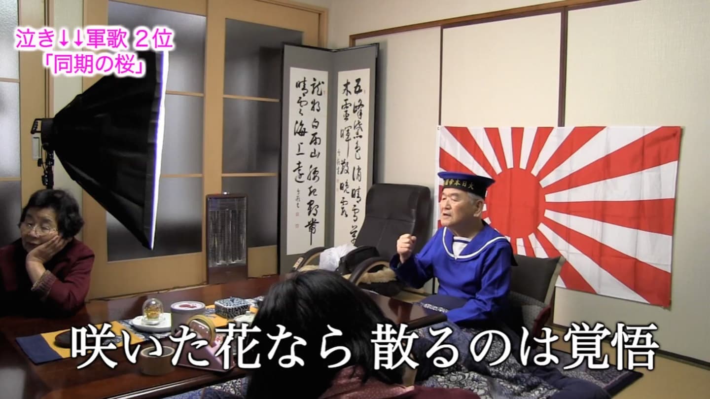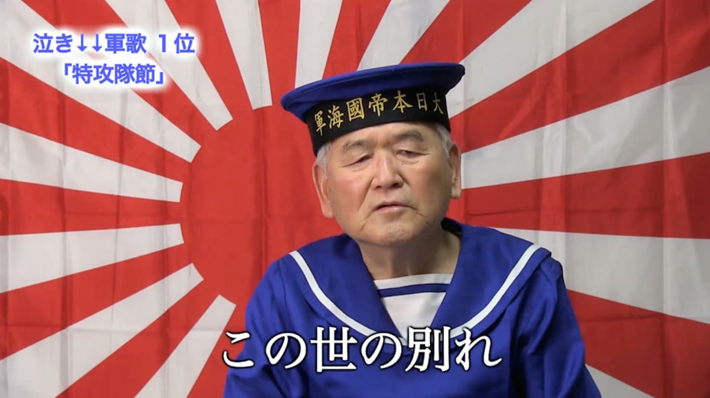 私は彼に、「気持ちの高揚する軍歌」と「とても悲しい気持ちになる軍歌」の3位までを祖父の主観で選んでもらい、当時の大日本帝国海軍の制服のレプリカの衣裳を祖父に着てもらい、アカペラで歌ってもらった。