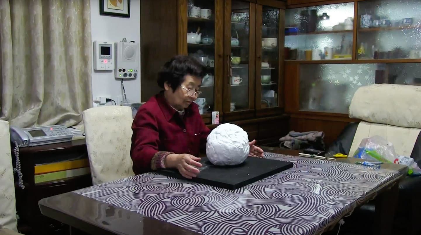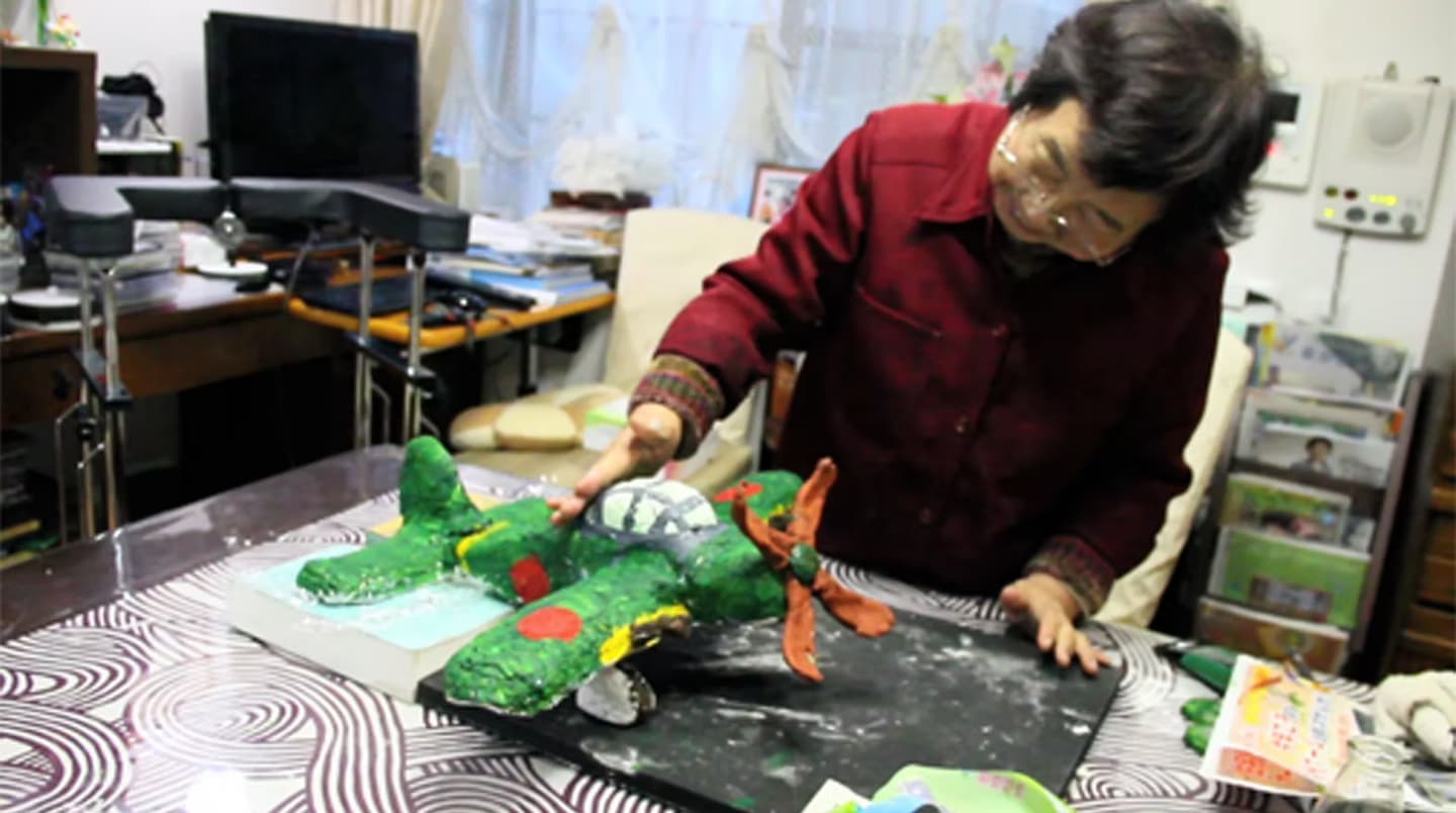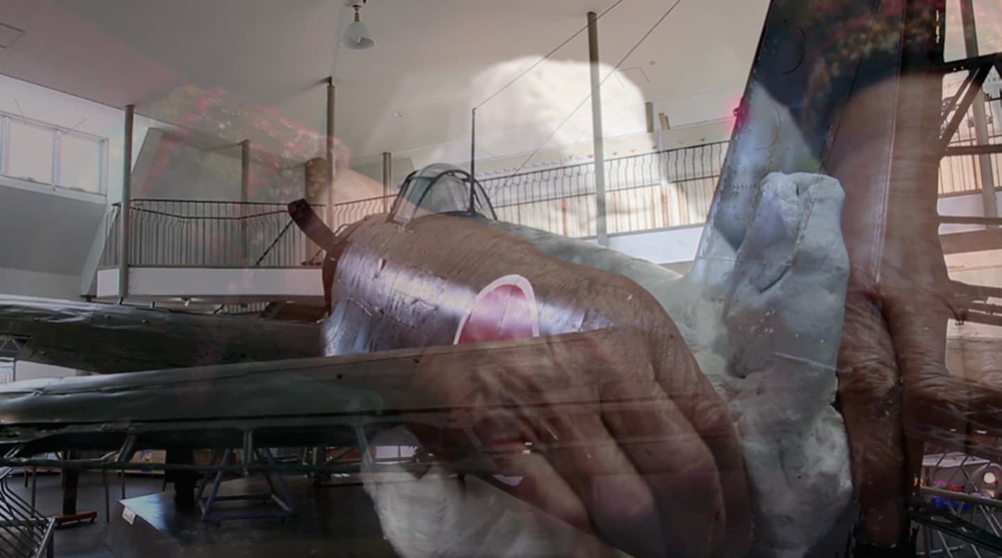 私は、彼女がかつて造っていた戦闘機「紫電改」を、思い出して造ってほしいと、大きな粘土の塊を渡した。「よく覚えていない」と戸惑いながらも粘土をこねだす祖母の手の中で、その記憶や両手に強烈に遺った「紫電改」が造形されてゆく。