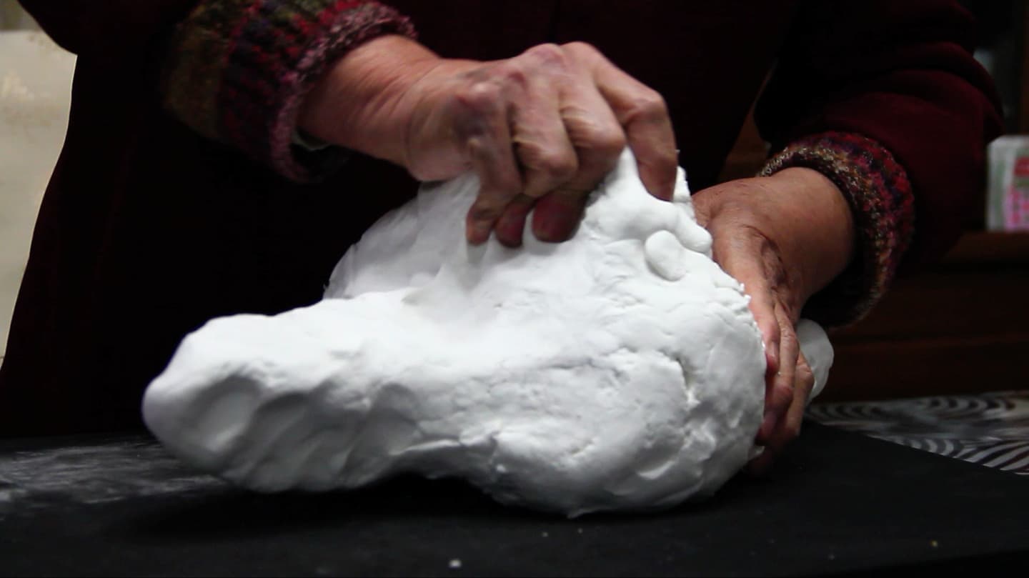 Though unsure and saying, “I don’t remember it very well,” she began kneading the clay.