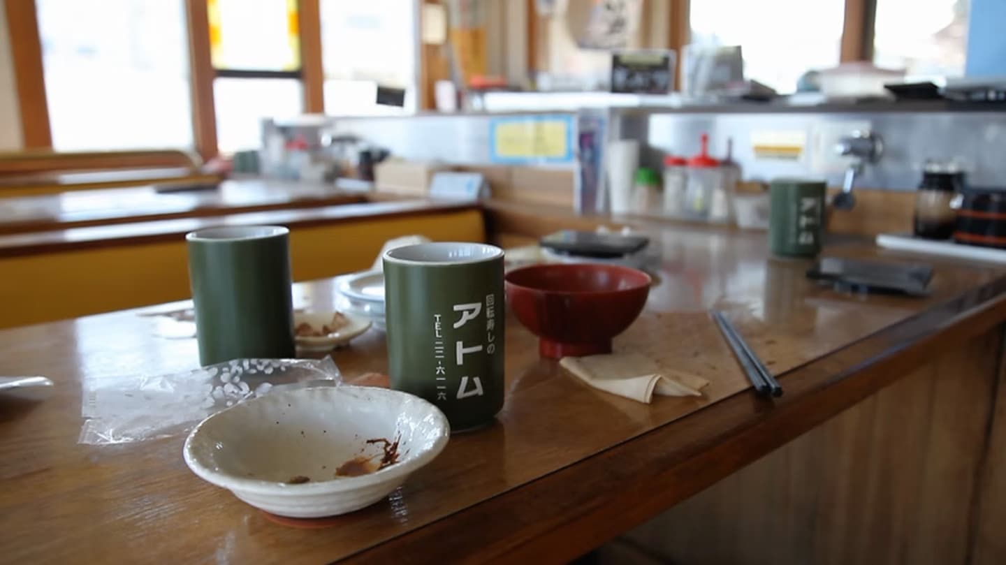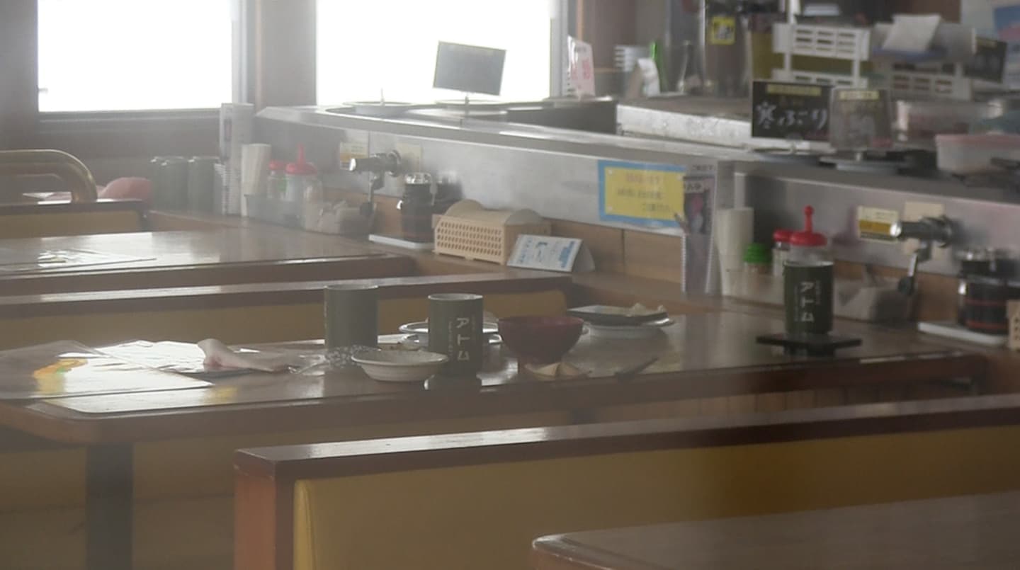 そんな中で、私は初めて福島の同地域を訪れた。当時は、放射能の影響で午前9時から午後4時までのみ立ち入りが許可されており、シャッターが道路に張り巡らされていた。震災発生当時のまま、手をつけられない家や建物が残っていた。「回転寿司アトム」にも訪れたが、お店の中を覗き込むと、当時のお客さんの食べかけのお皿までそのまま残されていた。私は店長にどうしても会いたくなった。現在の気持ちを聴きたくなった。