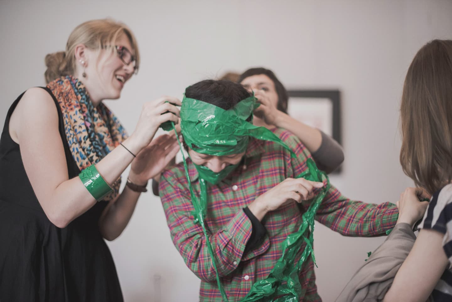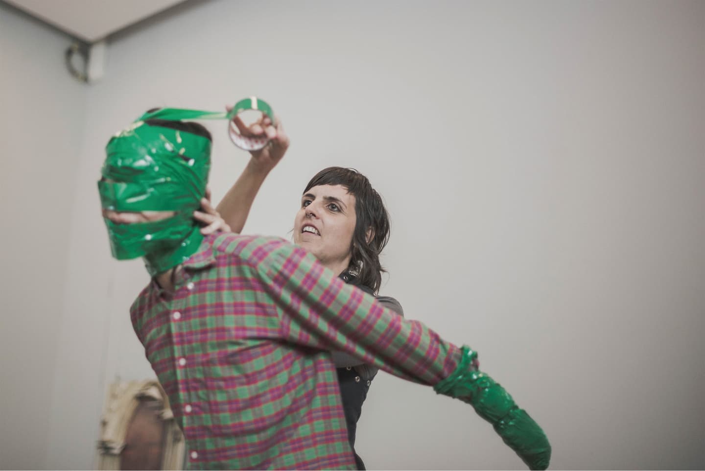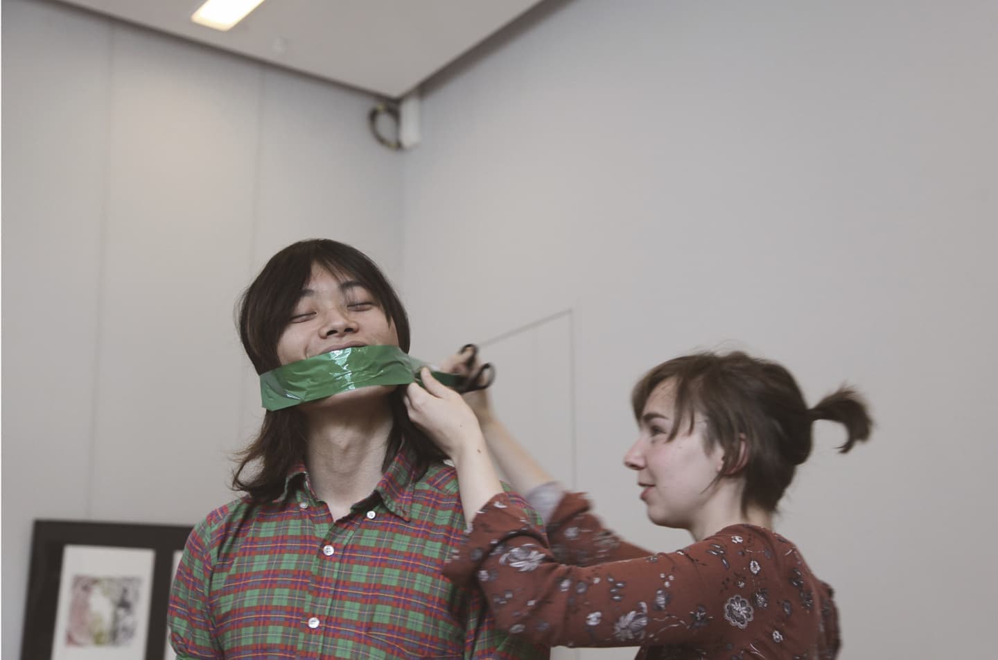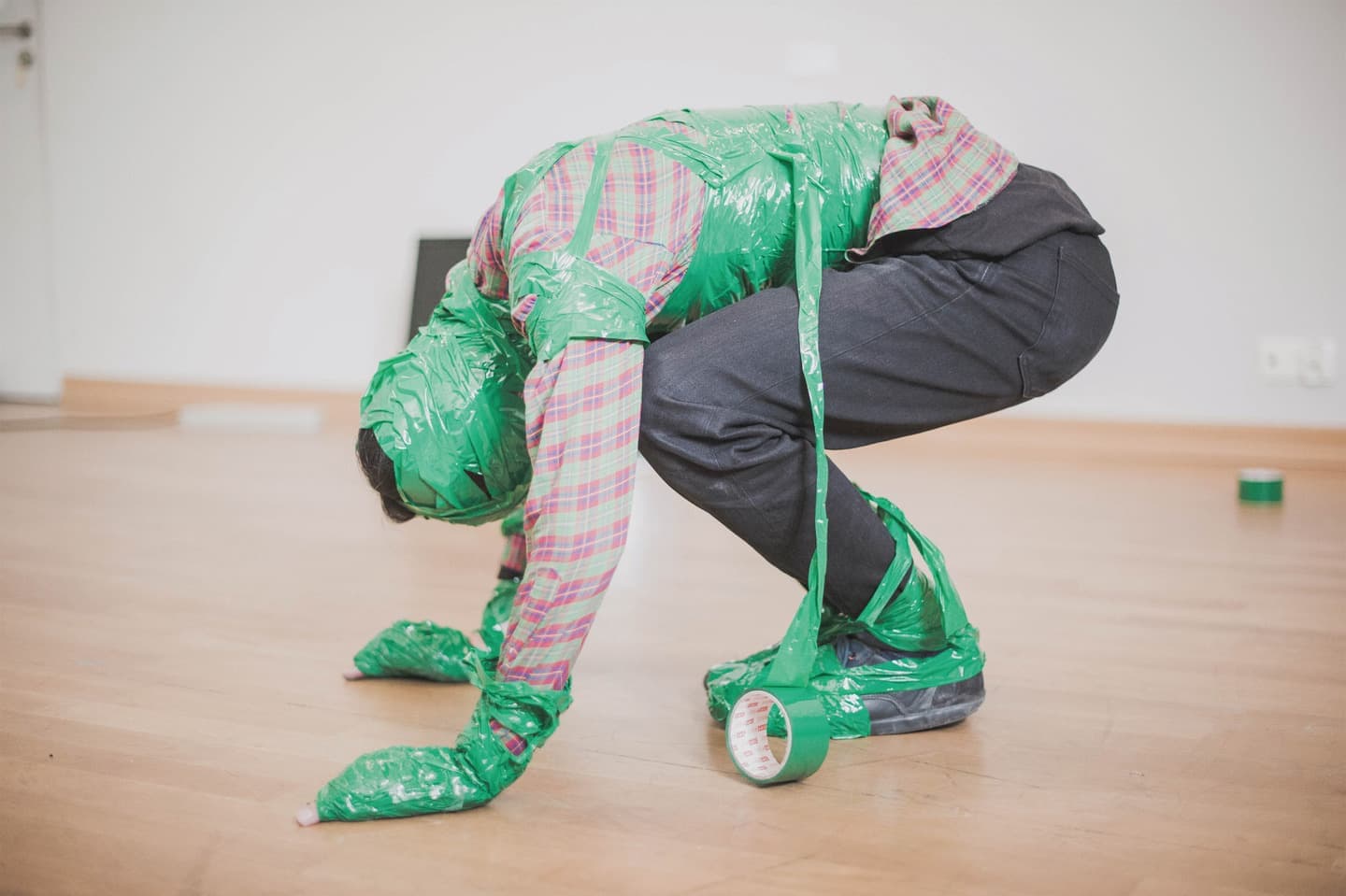 During the performance, I invited friends from the audience to receive a roll of green tape.