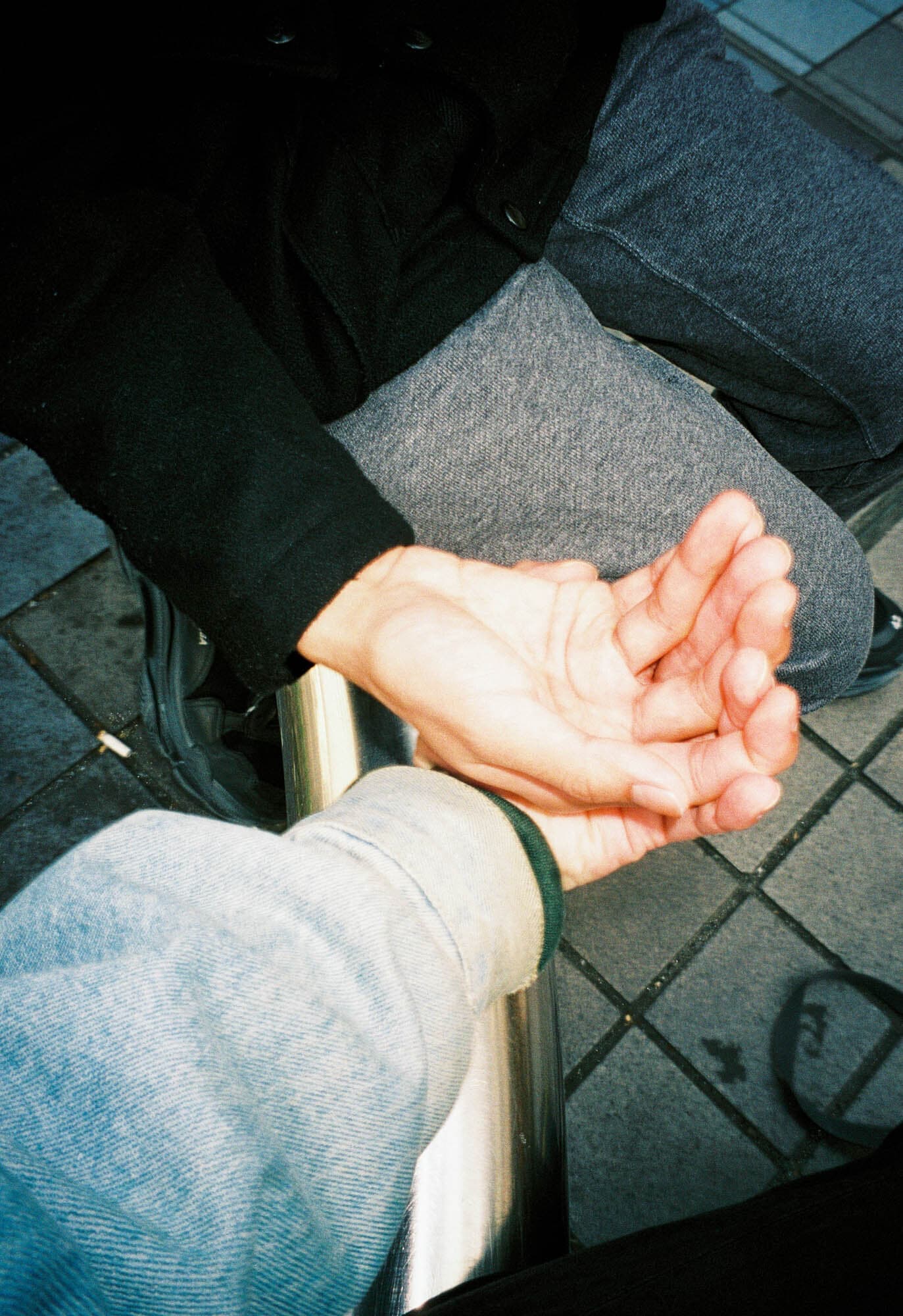 So we sat on a bench near his hometown station, and photographed ourselves “holding hands.” I didn’t want it to be simply either “we’re holding hands” or “we’re not.” I wished for more kinds of connections. So we came up with all the ways of “holding hands” we could think of, and then held them.