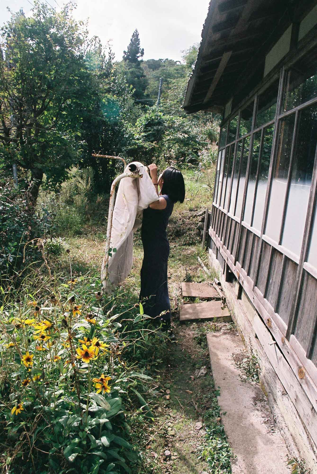 This was inspired by the impression I had when I first visited Megumi Komatsu, on the porch of what had been a long-abandoned house, now her home, laundry was swaying in the breeze.