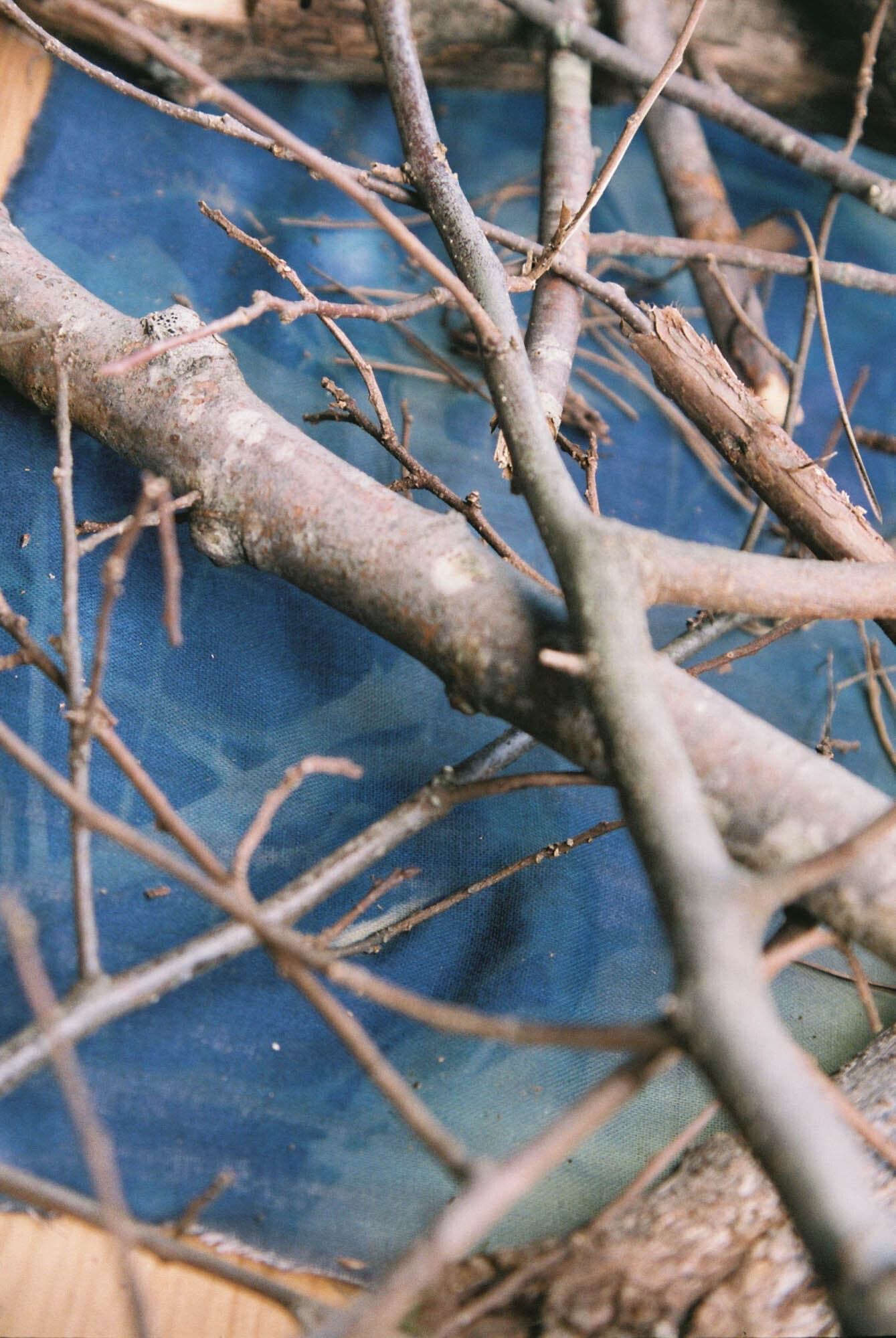 I decided to preserve the “firewood” she picked up, wood that would usually disappear into daily life in flames, by photographing it using cyanotype, an old photographic technique also known as sun printing.