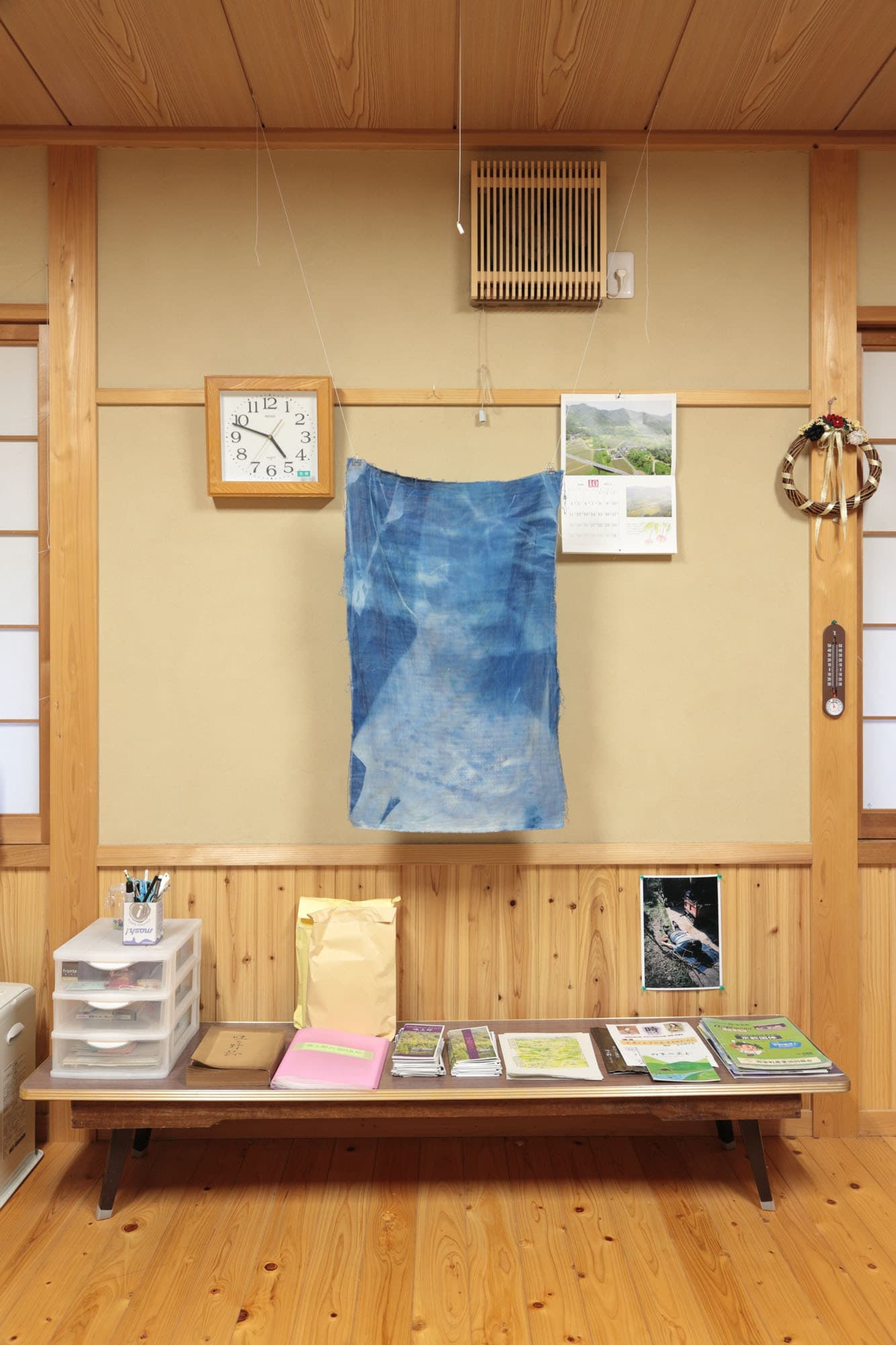 そして、初めて小松恵美さんに会いに行った時、それまでは誰も住んでいなくて廃墟のようだった空き家の庭先に洗濯物が揺れていたことがとても印象的だったので、それらの写真を洗濯物のように吊るした。