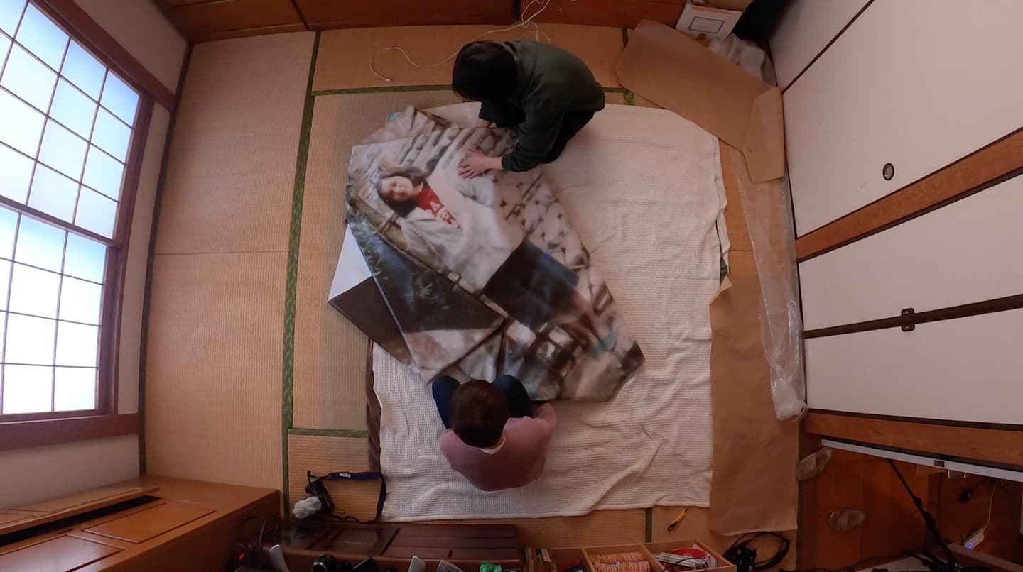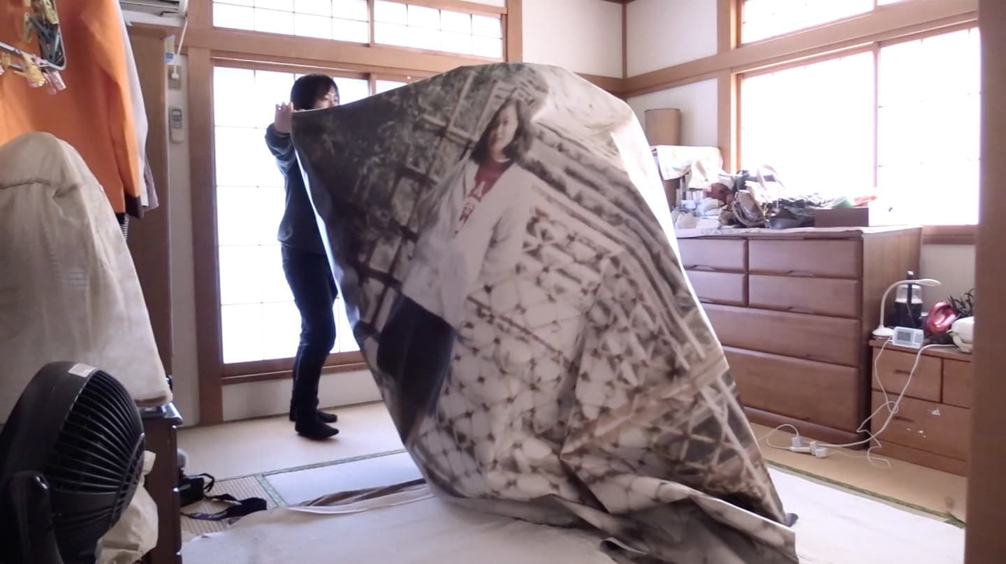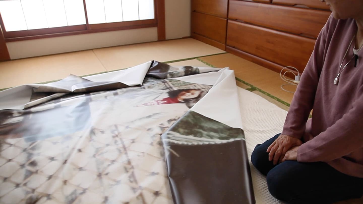 So I enlarged a photograph of her from that time as her Life-size and spread it out in the bedroom she once shared with my father. As I listened to her speak about her life when she was still “Kurumi Nagamine,” We folded, wrapped her in, and gently interacted with the photo.