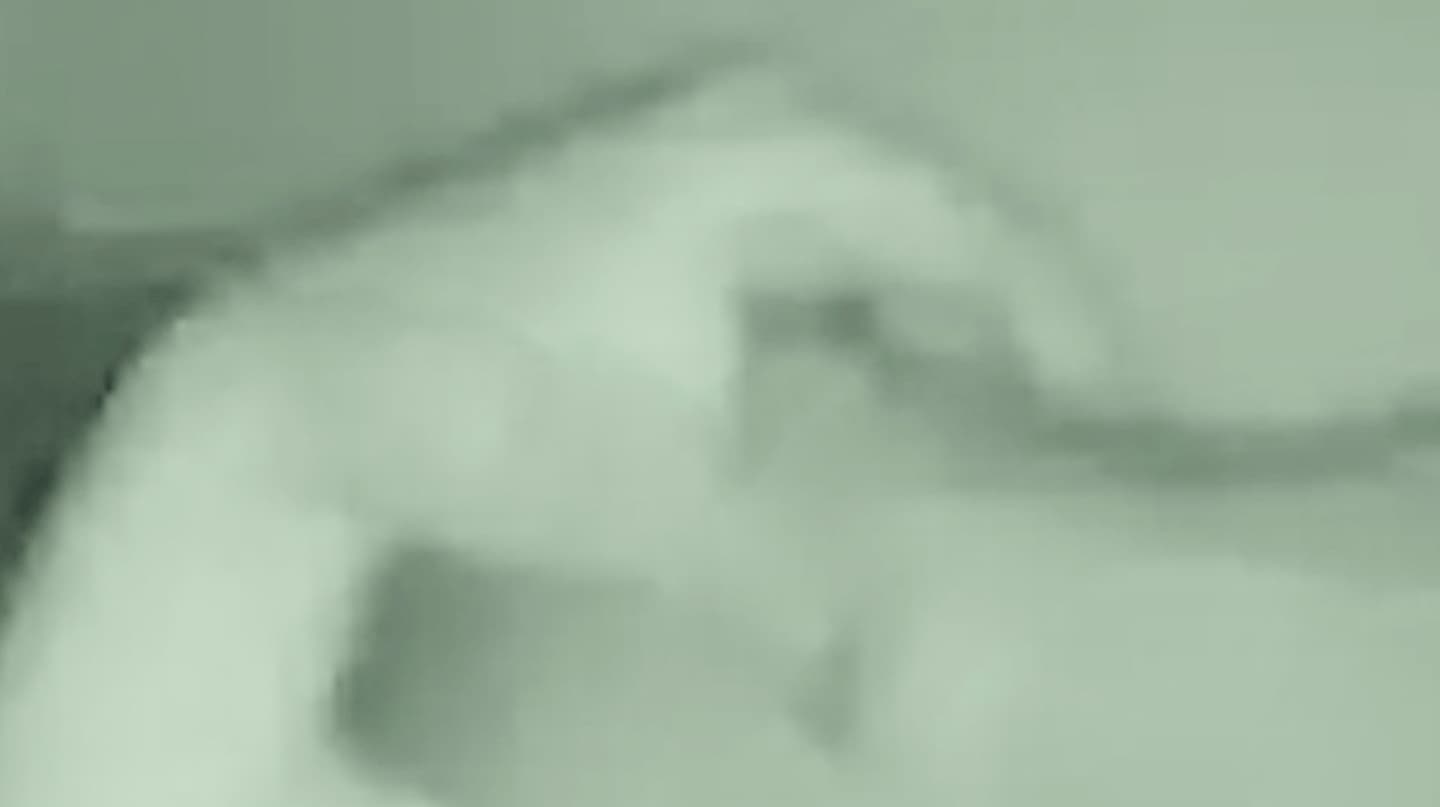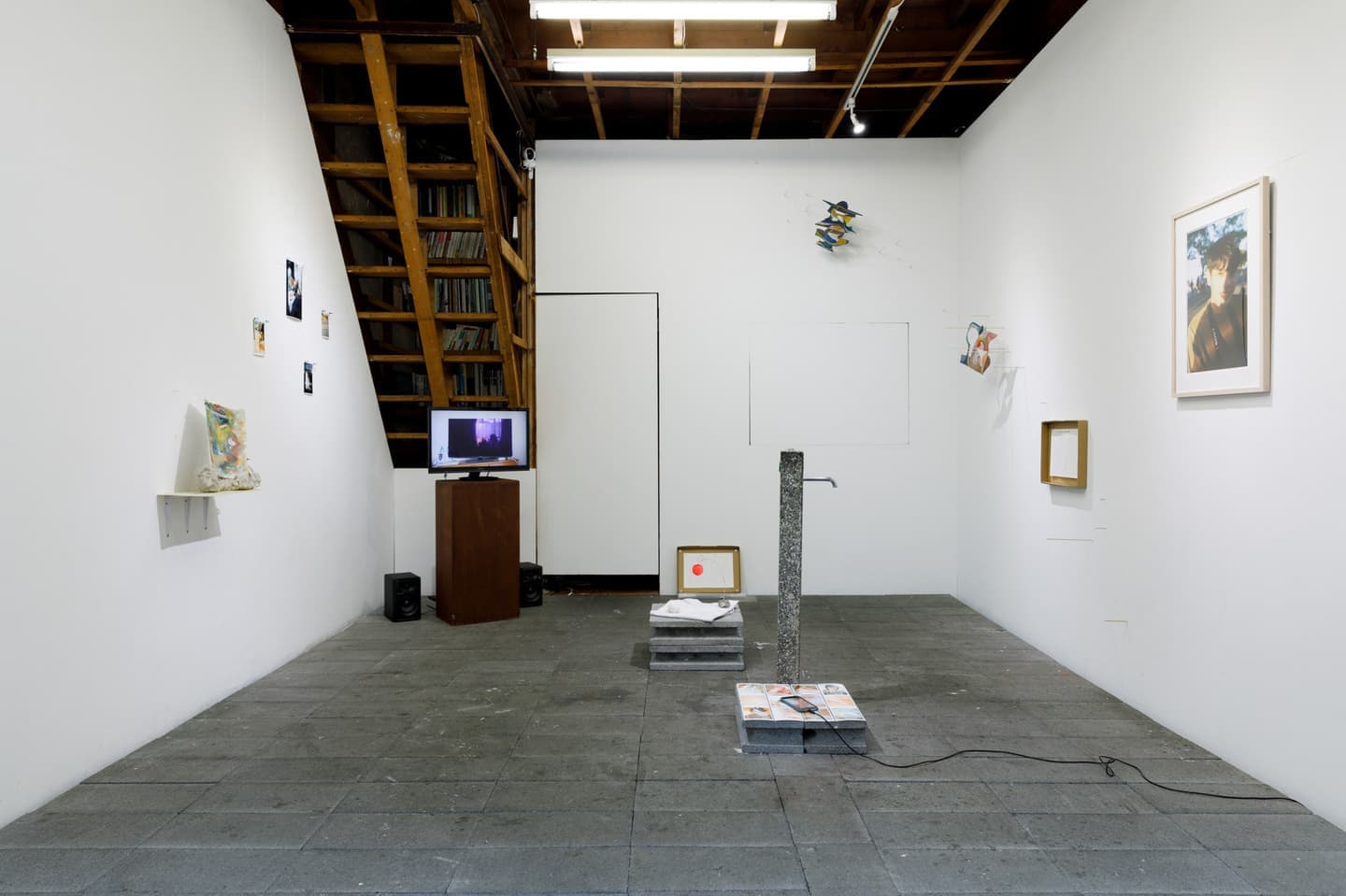 In the middle of the room is a television. But the screen is turned off, so our reflections appear faintly in the dark glass.